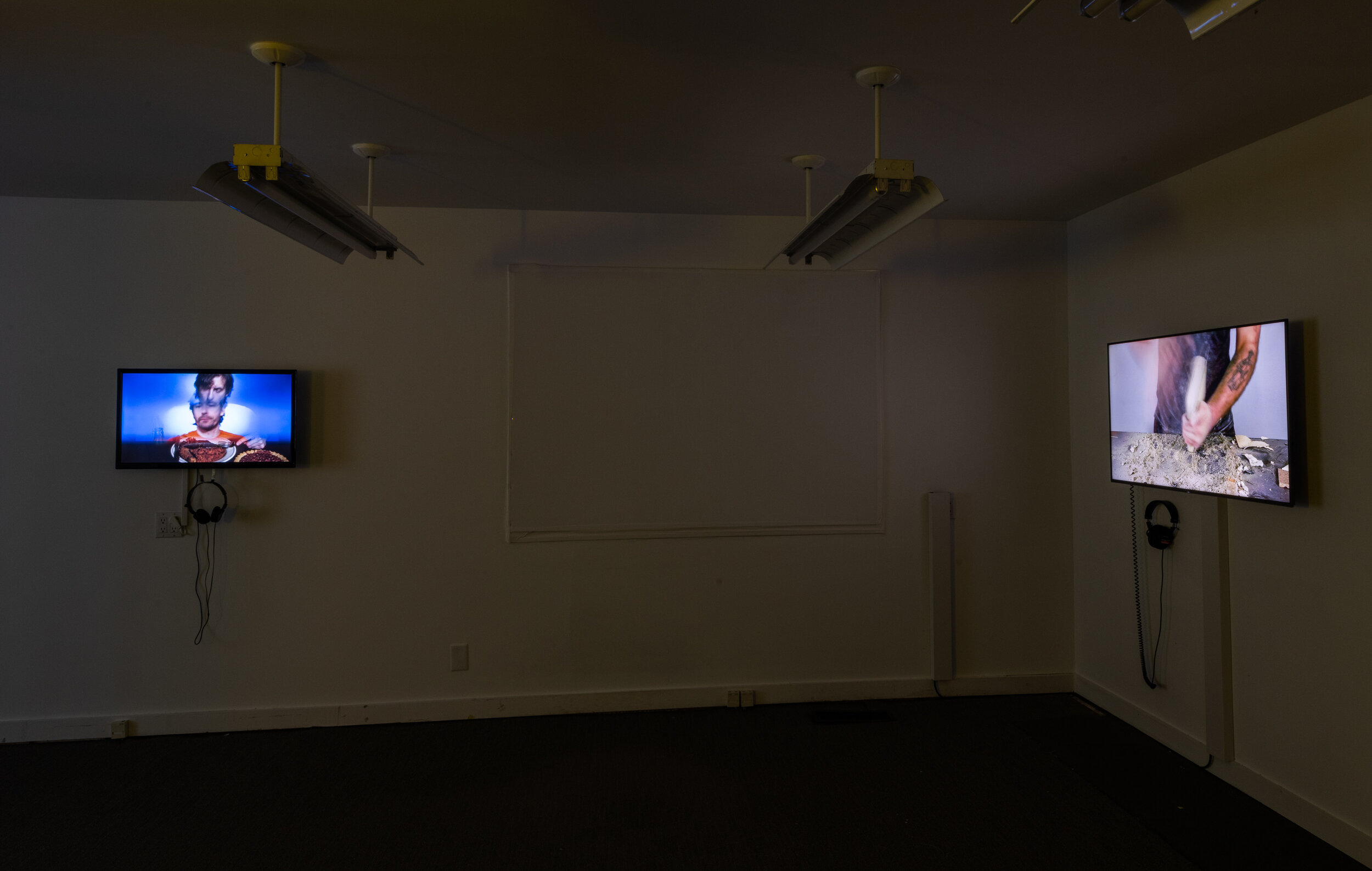 Utilizing an unused office space in the Chapel Hill, NC area. I mounted an exhibit of successful, working artists living in the area who work in video or multi-media. This type of work is relatively unshown in the expensive college town as they are not commercially viable, yet, the community is filled with artists who show this type of work in larger art cities. This two-month pop-up exhibit served as a bridge between the local community and the artists who live yet never show there.