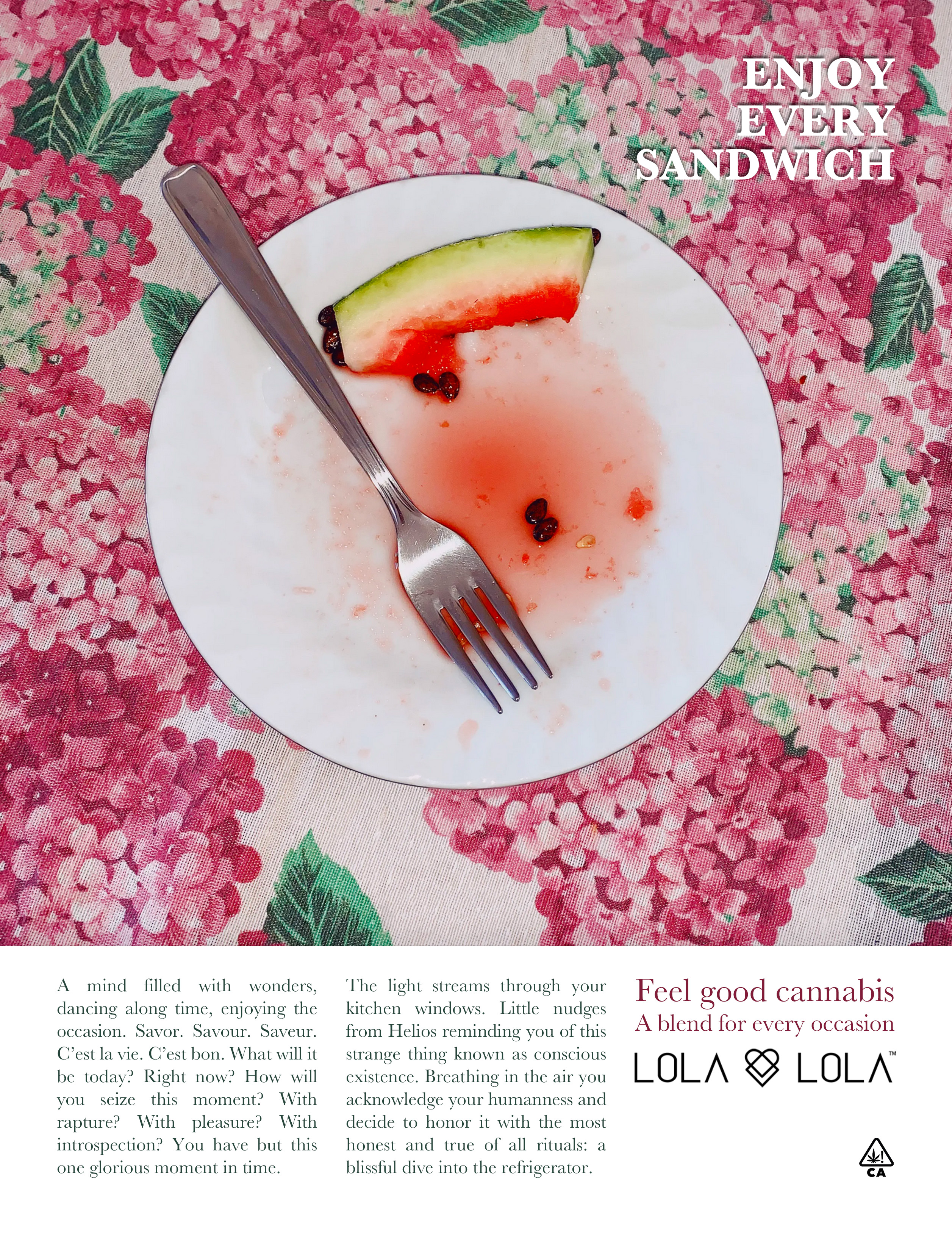 Print ads for 21+ publications that utilize high-end art photography to establish Lola Lola on the higher end of the cannabis market.